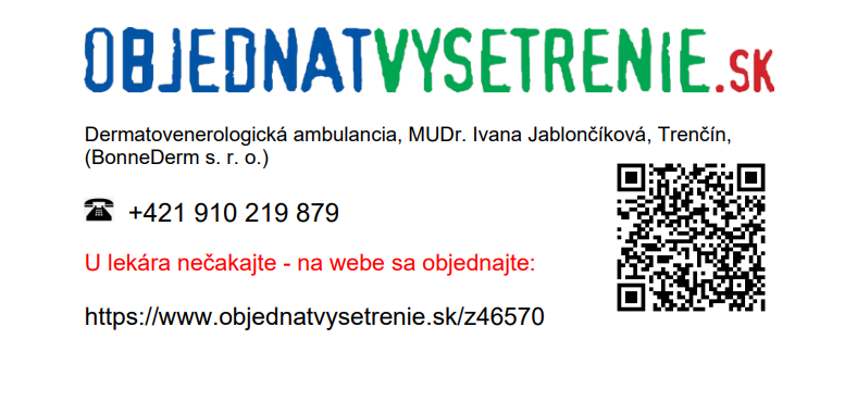Objednávať sa na vyšetrenie bez čakania a na presne dohodnutý čas, je možné cez rezervačný portál https://www.objednatvysetrenie.sk/ - postačuje aj naskenovanie QR kódu, kliknutím na čierne tlačidlo pod týmto príspevkom https://www.navstevalekara.sk/ alebo na telefónnom čísle +421 910 219879