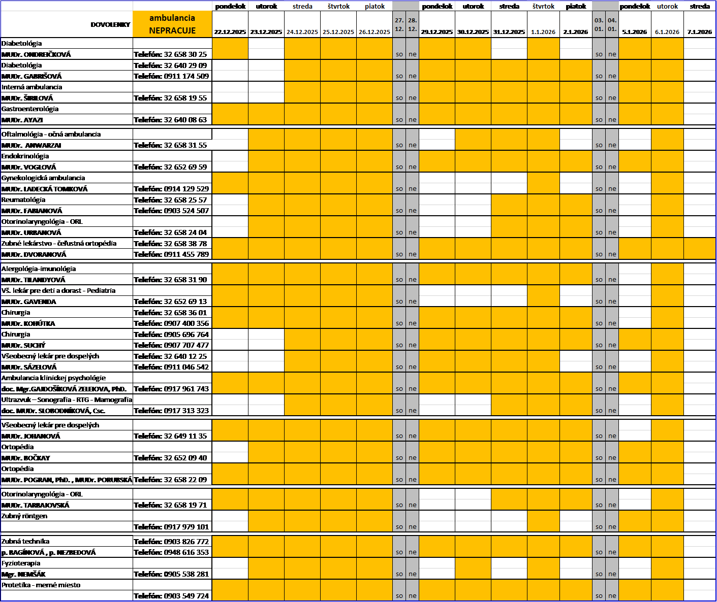 DOSTUPNOSŤ AMBULANCIÍ počas Vianočných sviatkov